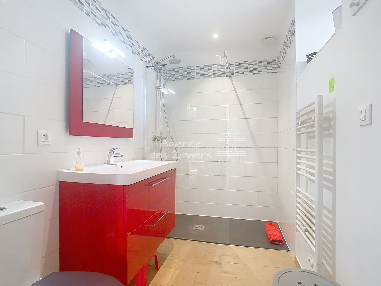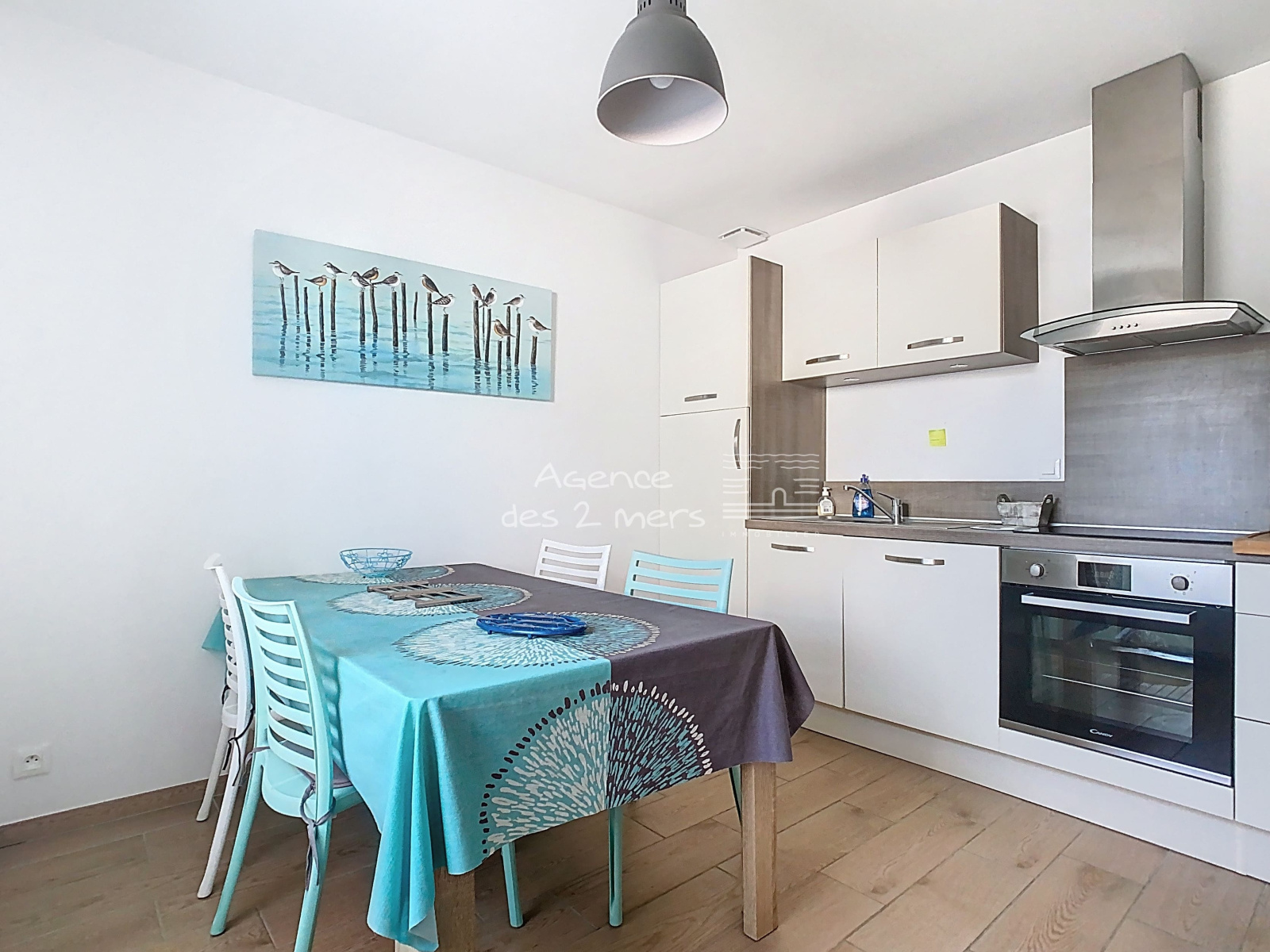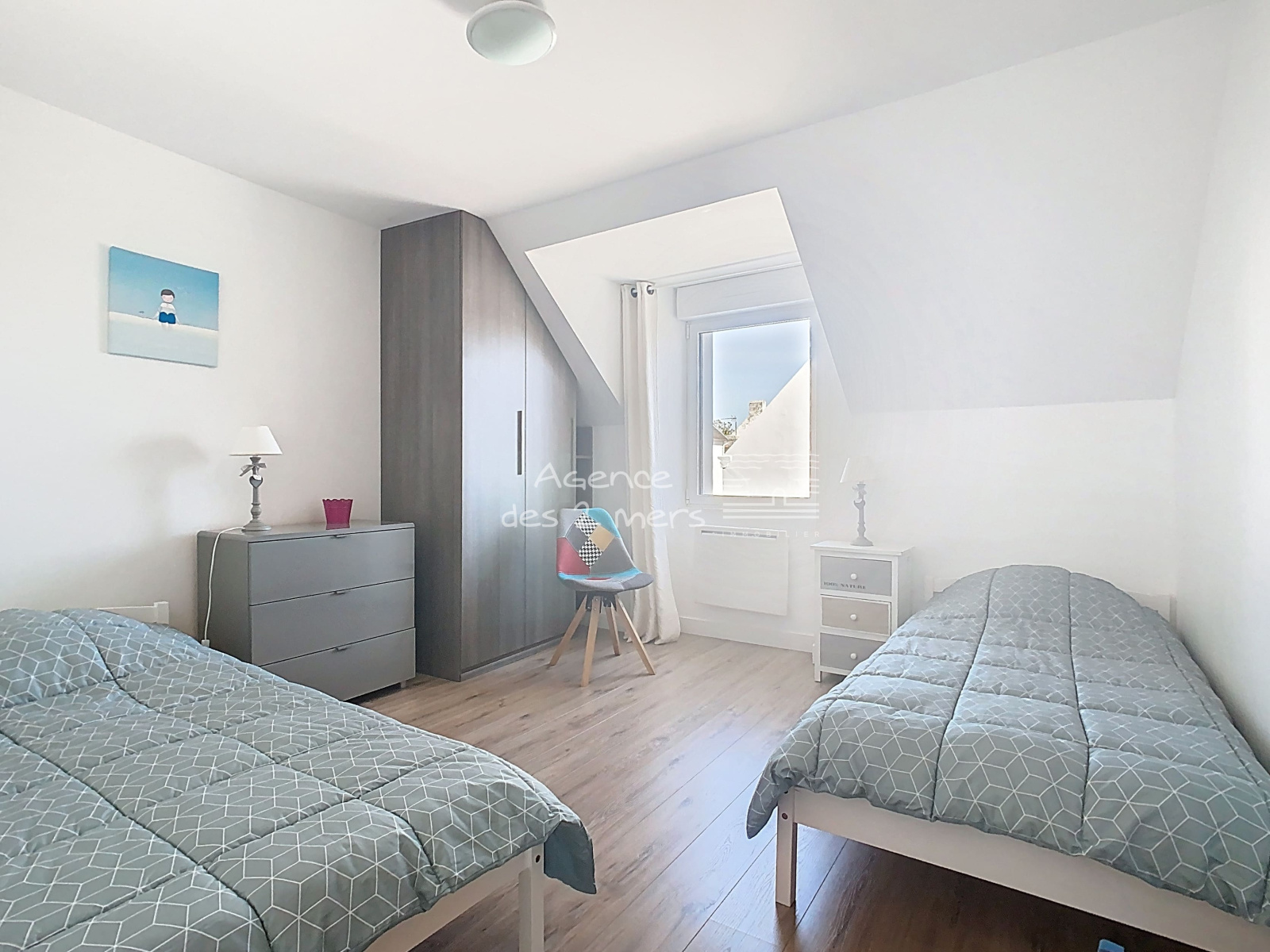 Elle offre au rez-de-chaussée : entrée sur agréable séjour-salon donnant sur belle terrasse à l'Ouest, cuisine aménagée/équipée, salle d'eau avec wc et coin buanderie ; A l'étage : 2 belles chambres, une petite pièce de rangement type dressing et salle d'eau avec wc.