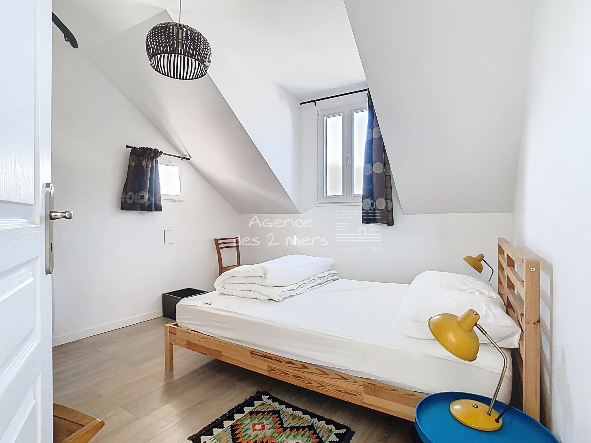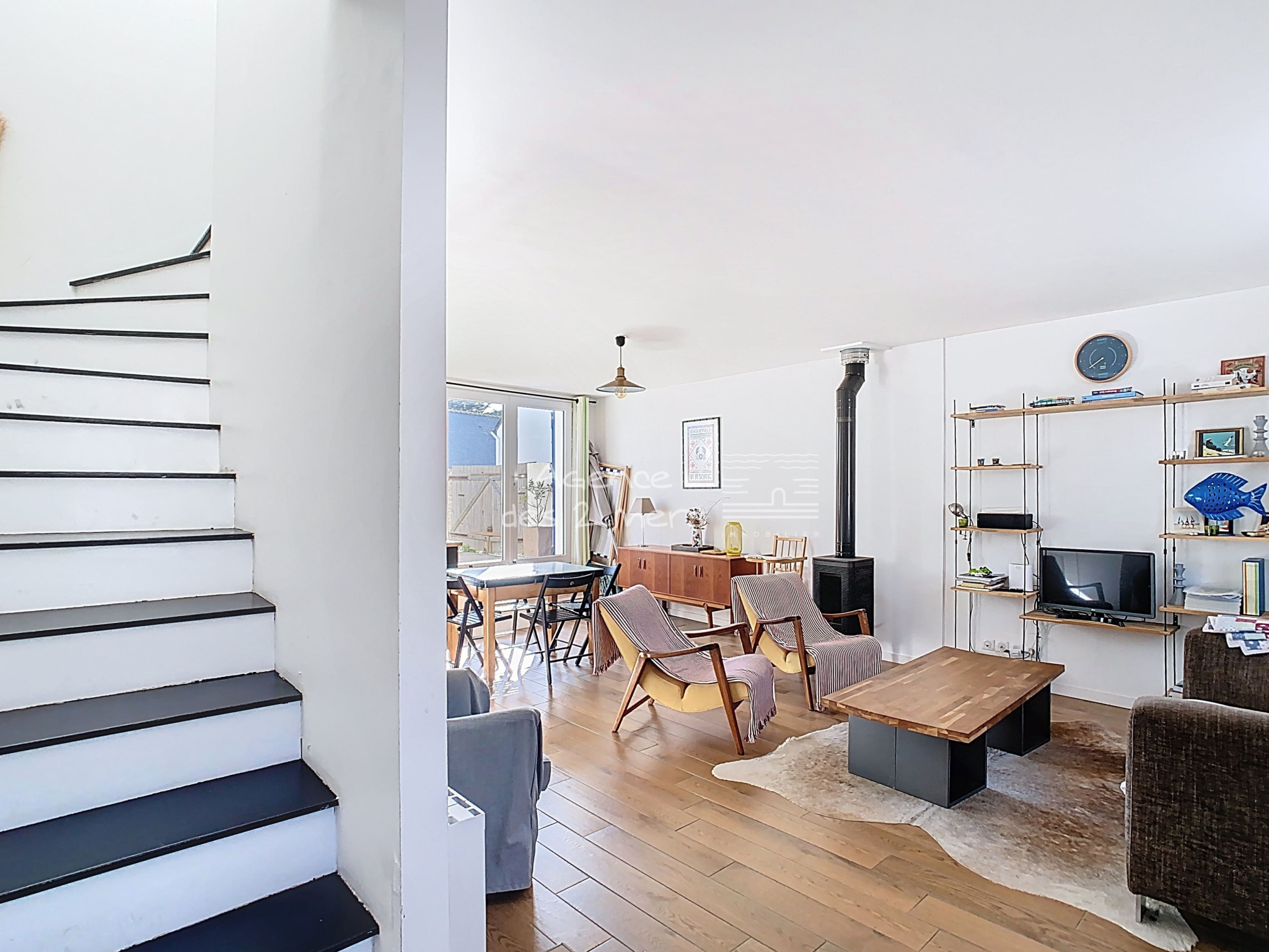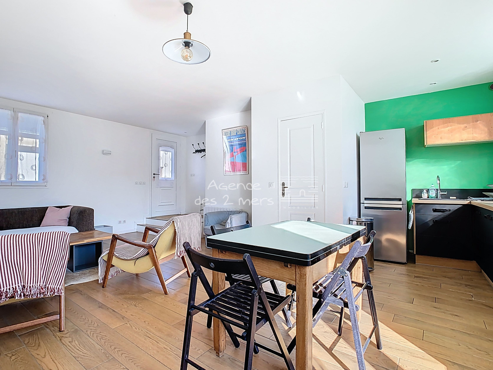 Quiberon (56170)Au coeur d'un charmant village typique de la Côte Sauvage, Maison de pêcheur reconstruite en 2016, comprenant au rez-de-chaussée : une entrée sur agréable pièce de vie avec poêle à bois cuisine aménagée ouverte donnant sur terrasse (cour fermée) orientée plein Sud, wc sous escalier ; A l’étage : palier desservant 3 chambres (2 chambres + une chambrette) et salle de bains avec wc. Grenier sous pentes. En complément : un Garage non attenant, construite en parpaings et pierres, couvert en ardoises.