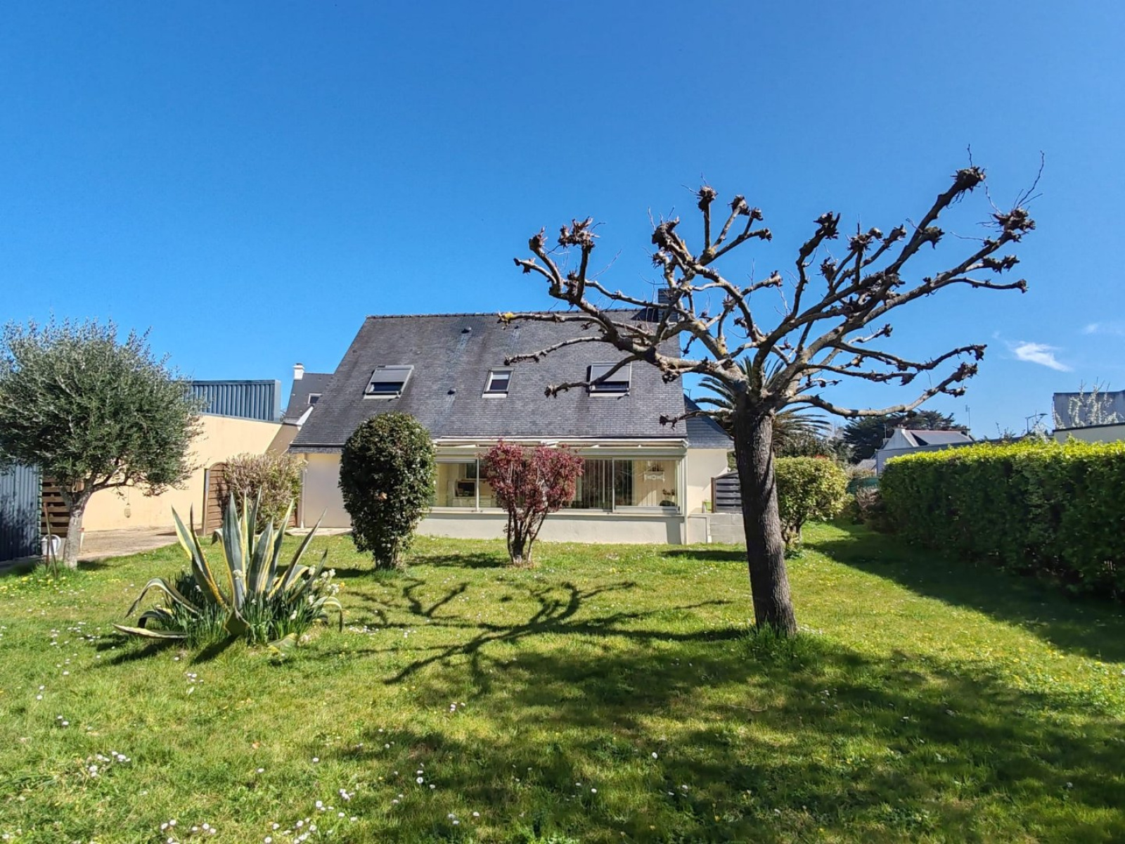 Quiberon (56170)Située sur une belle parcelle de 1077 m², à 10 minutes à pied du centre ville, cette maison en très bon état vous offre tout le confort nécessaire, elle bénéficie d’un bon agencement et d’une belle surface.Au rez-de-chaussée, vous découvrirez une entrée, un spacieux séjour-salon lumineux, une cuisine fonctionnelle, une véranda, ainsi qu'une chambre, SDE, wc et buanderie. À l'étage, un palier dessert 3 chambres supplémentaires dont une avec dressing, et une salle d'eau/WC. Vous bénéficierez aussi d'un grand garage.Cette maison offre de nombreuses possibilités, tant pour une vie de famille qu’un projet d’aménagement avec la possibilité de diviser la parcelle ou de construire une extension. A visiter!