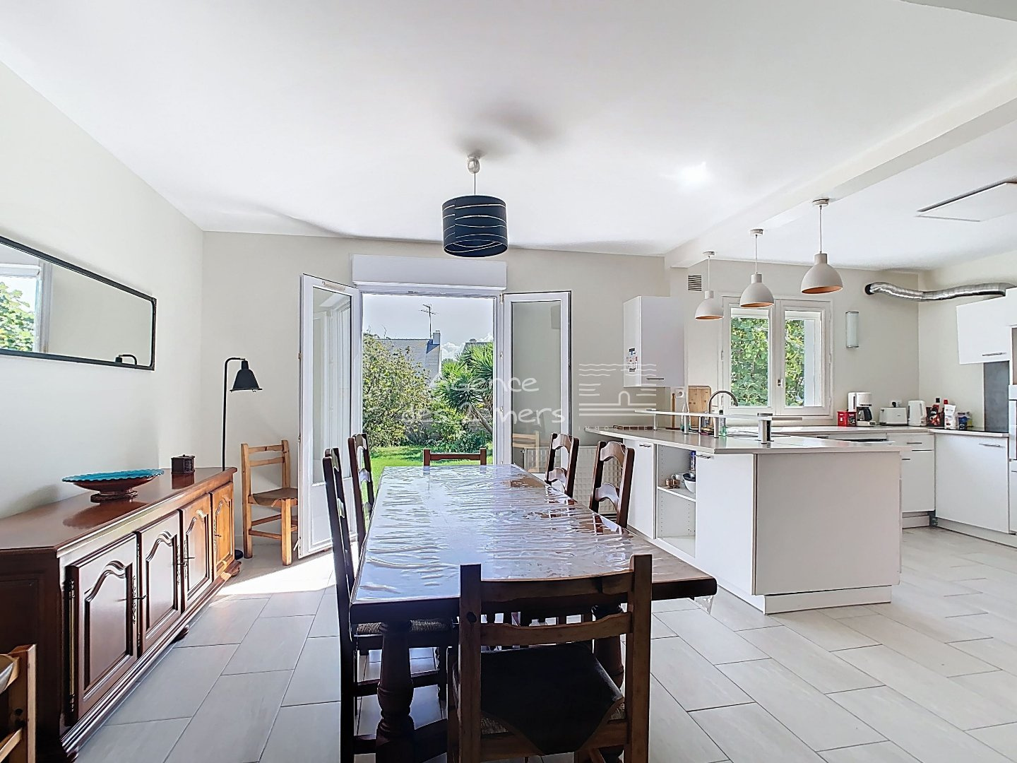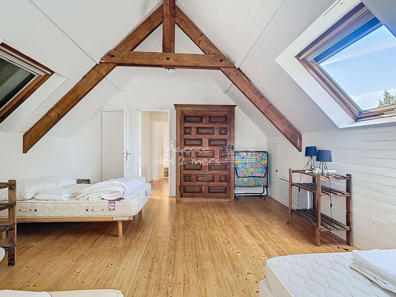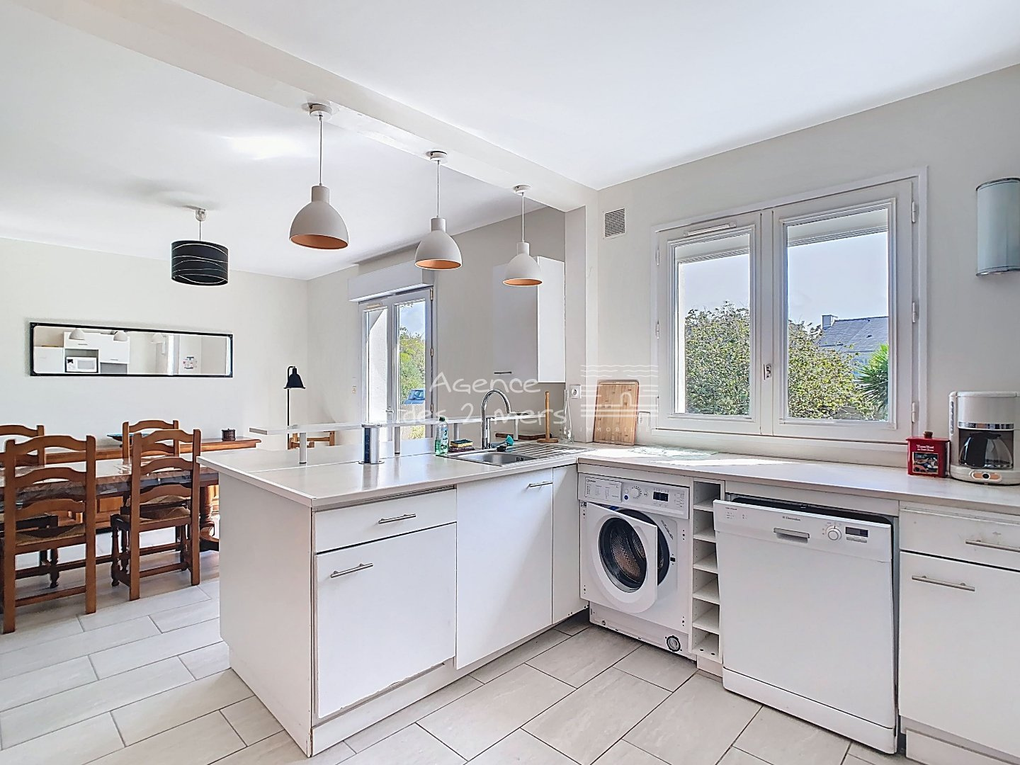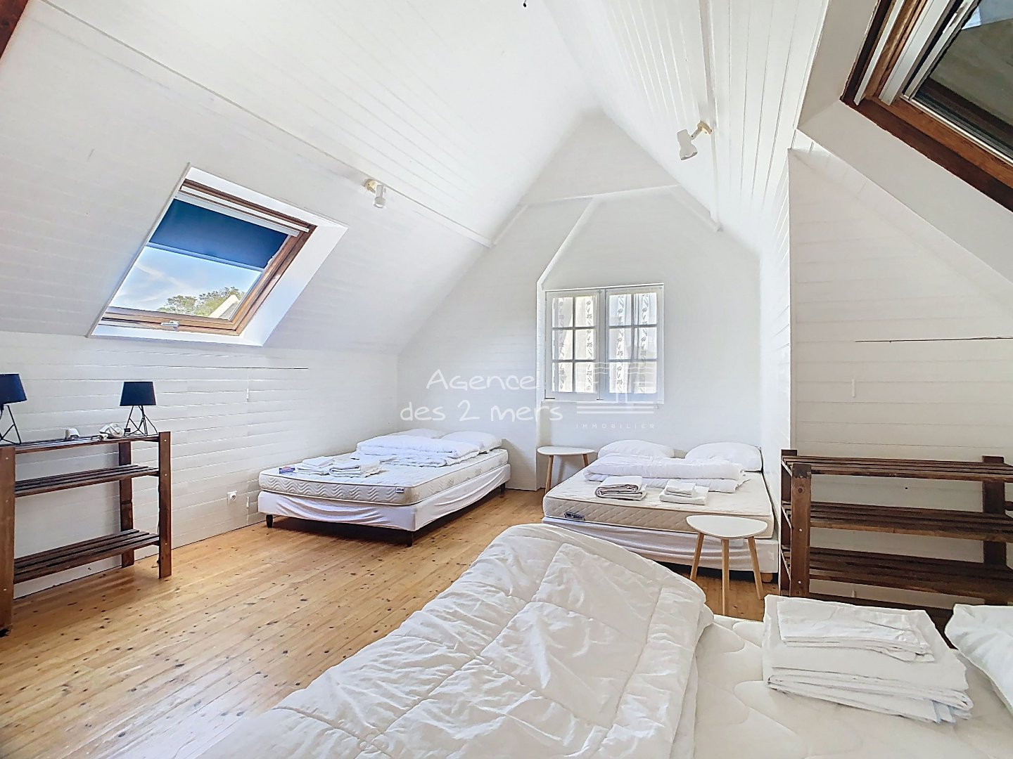 Quiberon (56170)Emplacement privilégié pour cette charmante maison des années 70, nichée dans un quartier calme et recherché, à proximité immédiate des plages de la Baie et de Port Haliguen. Sur son jardin clos et arboré de 1200 m² avec puits, cette propriété offre un cadre de vie paisible, idéal pour les vacances comme pour une résidence principale. Le rez-de-chaussée se compose d'une entrée, séjour-salon ouvrant sur une véranda, cuisine aménagée ouverte, dégagement desservant 2 chambres et salle d'eau avec WC. À l'étage : palier, première belle chambre, salle d'eau avec WC et une seconde grande chambre type dortoir, parfaite pour accueillir famille et amis.