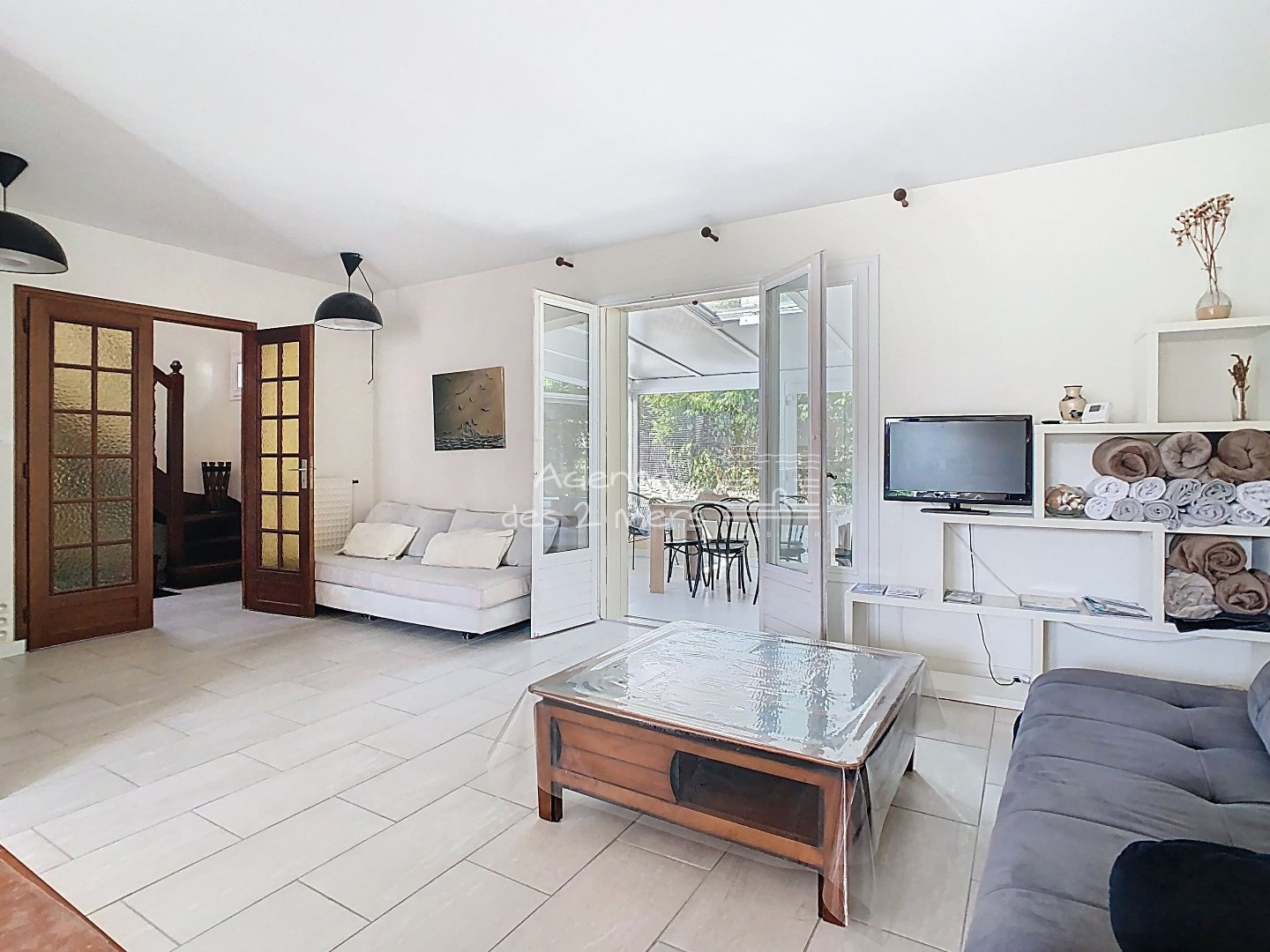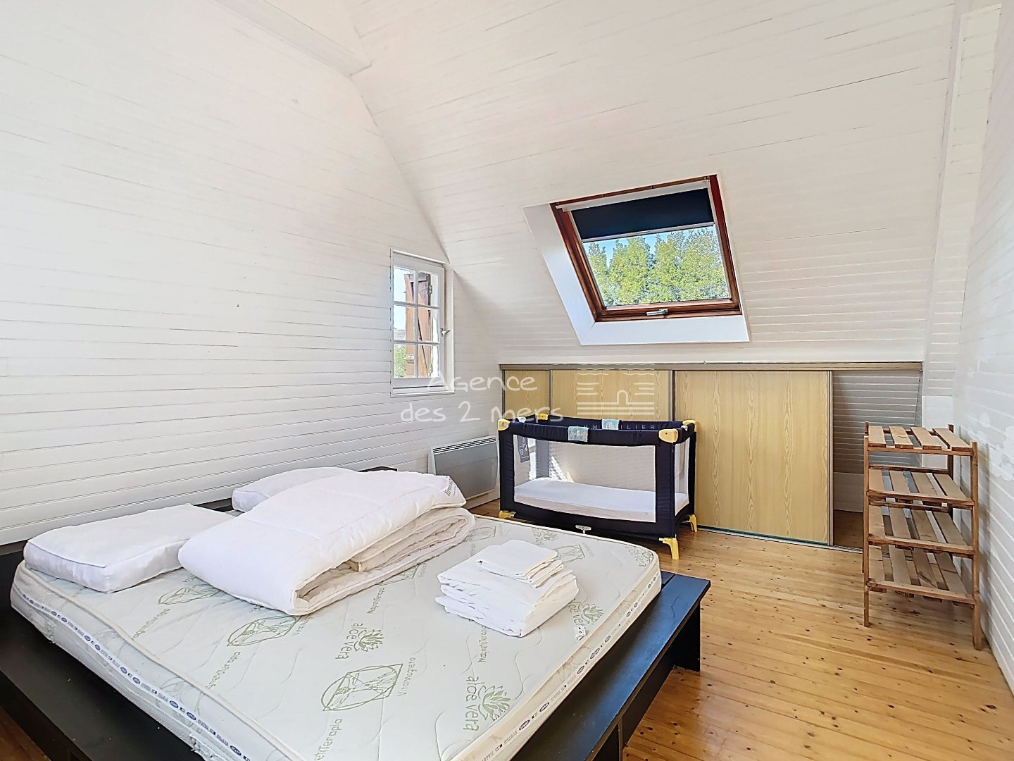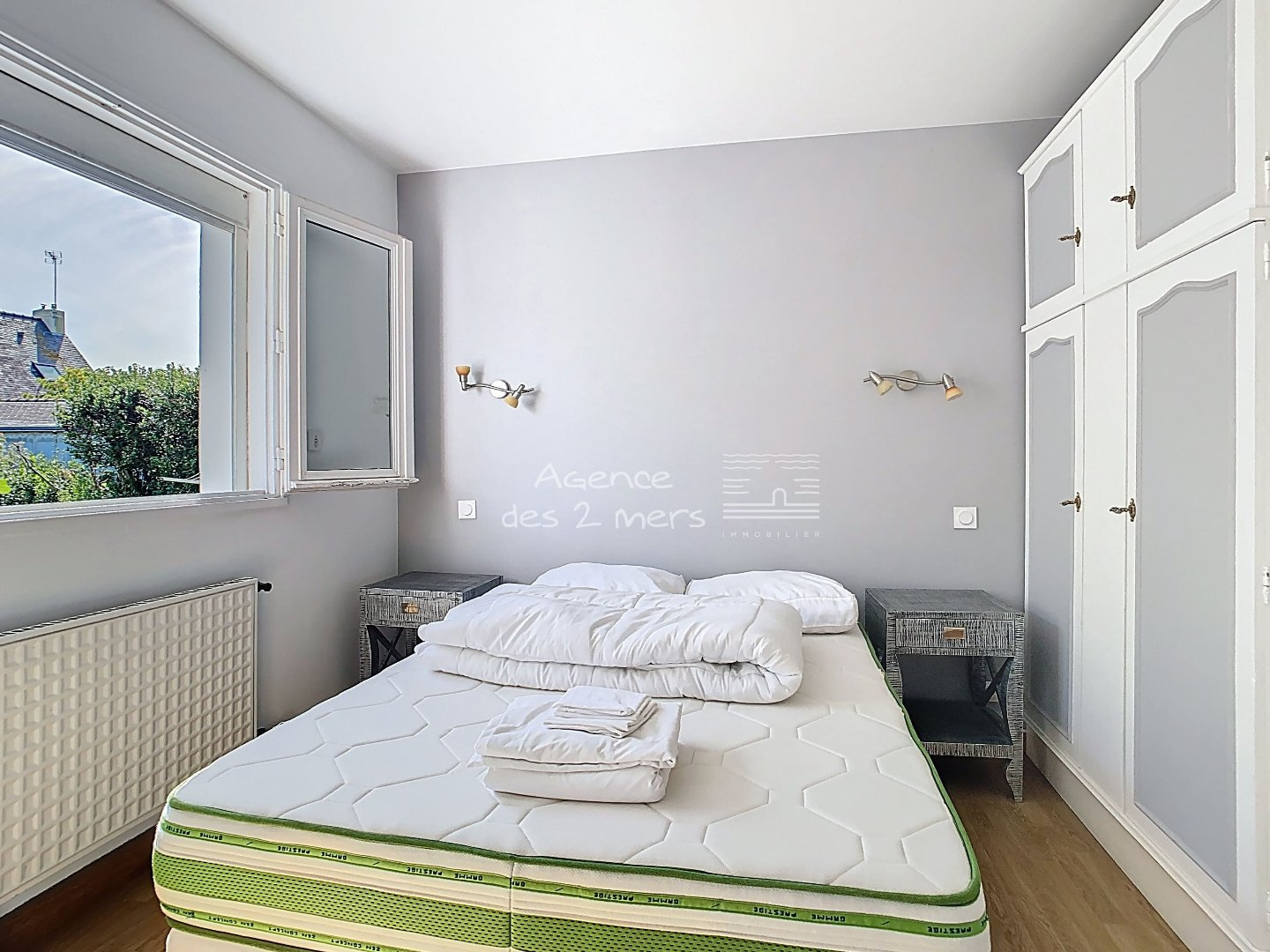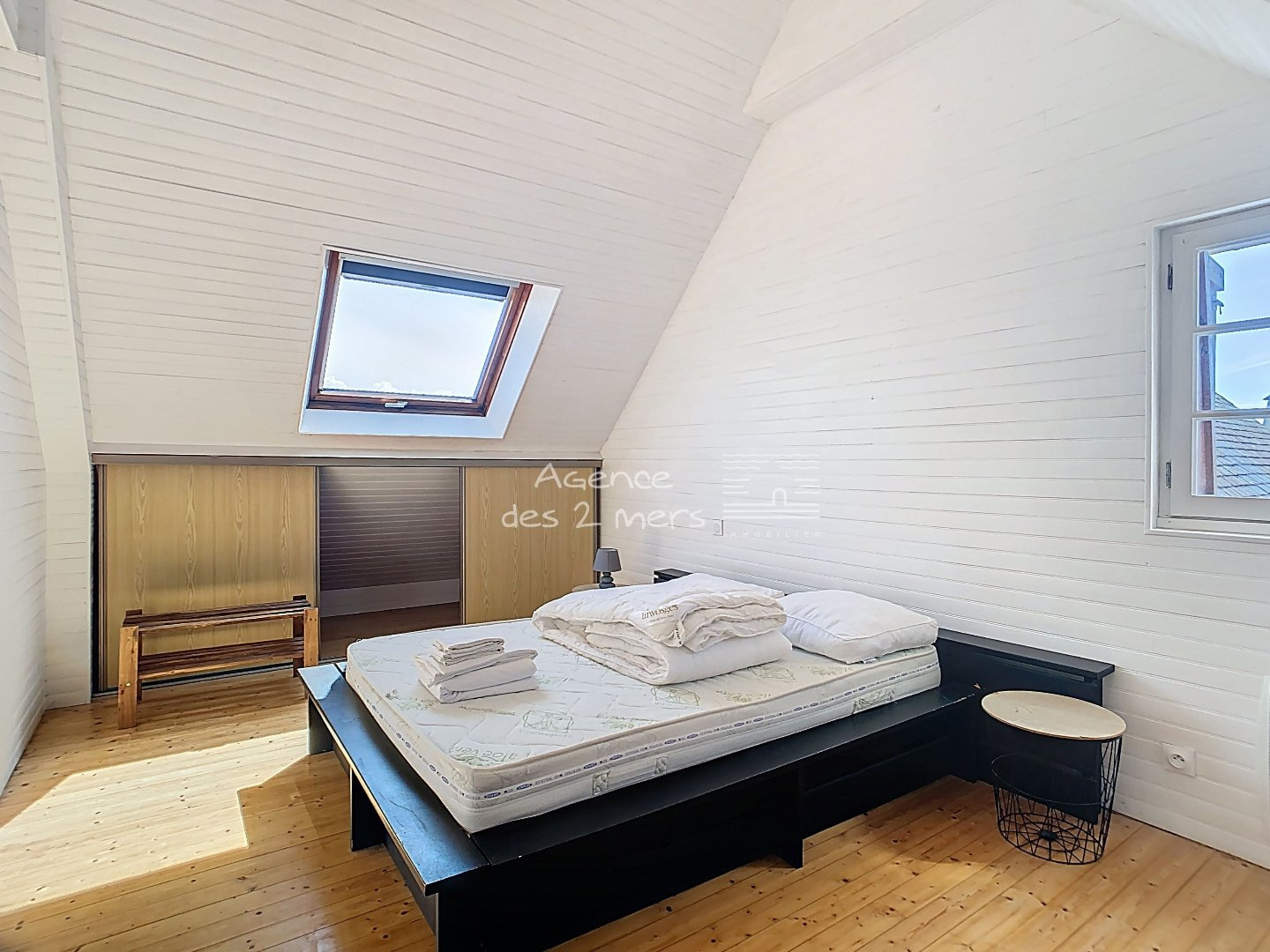 Quiberon (56170)Emplacement privilégié pour cette charmante maison des années 70, nichée dans un quartier calme et recherché, à proximité immédiate des plages de la Baie et de Port Haliguen. Sur son jardin clos et arboré de 1200 m² avec puits, cette propriété offre un cadre de vie paisible, idéal pour les vacances comme pour une résidence principale. Le rez-de-chaussée se compose d'une entrée, séjour-salon ouvrant sur une véranda, cuisine aménagée ouverte, dégagement desservant 2 chambres et salle d'eau avec WC. À l'étage : palier, première belle chambre, salle d'eau avec WC et une seconde grande chambre type dortoir, parfaite pour accueillir famille et amis.