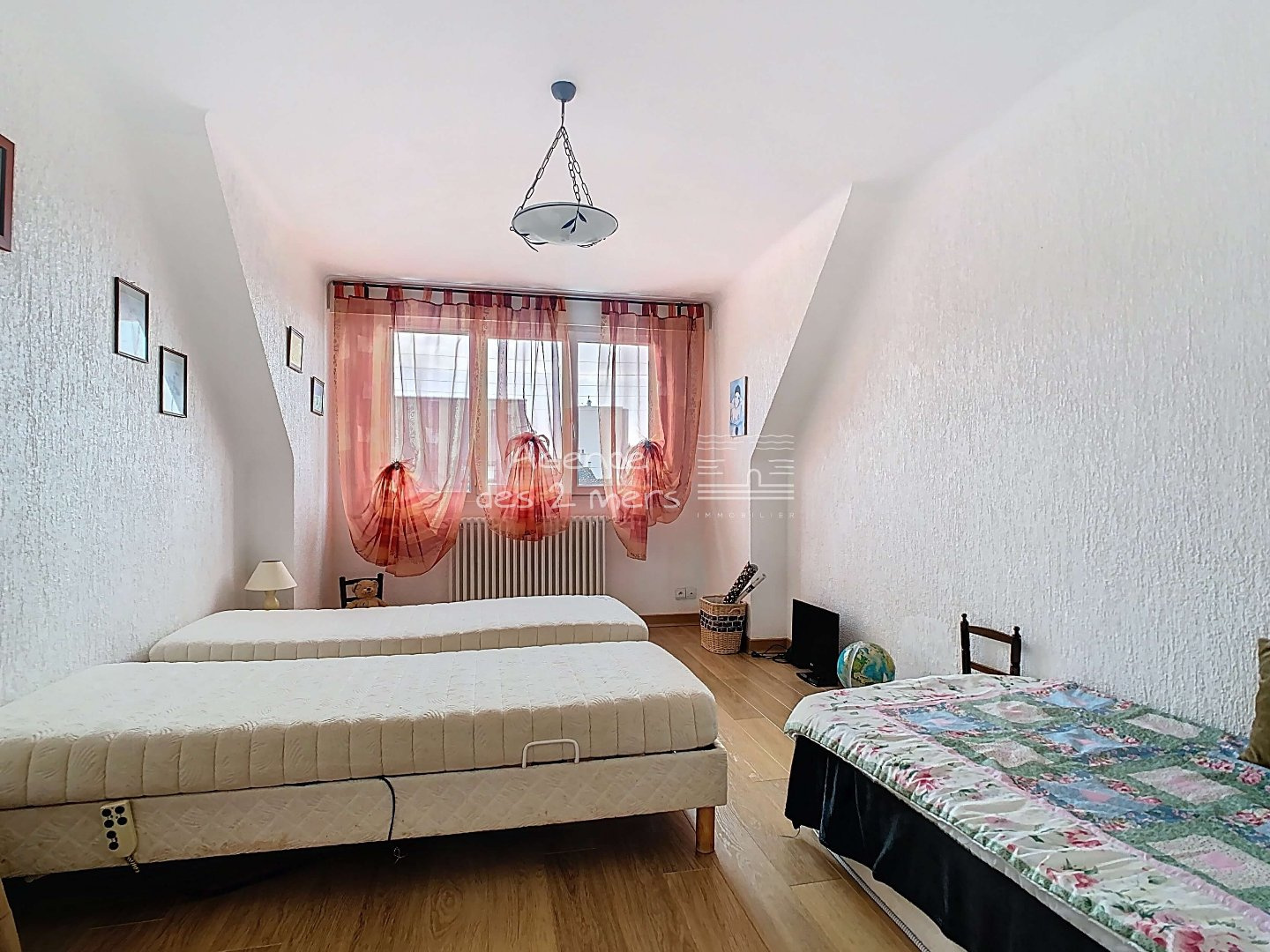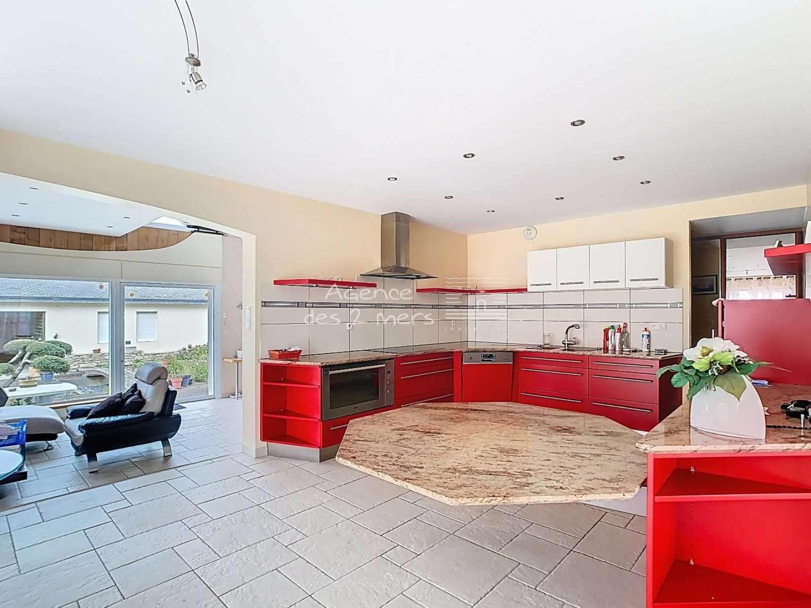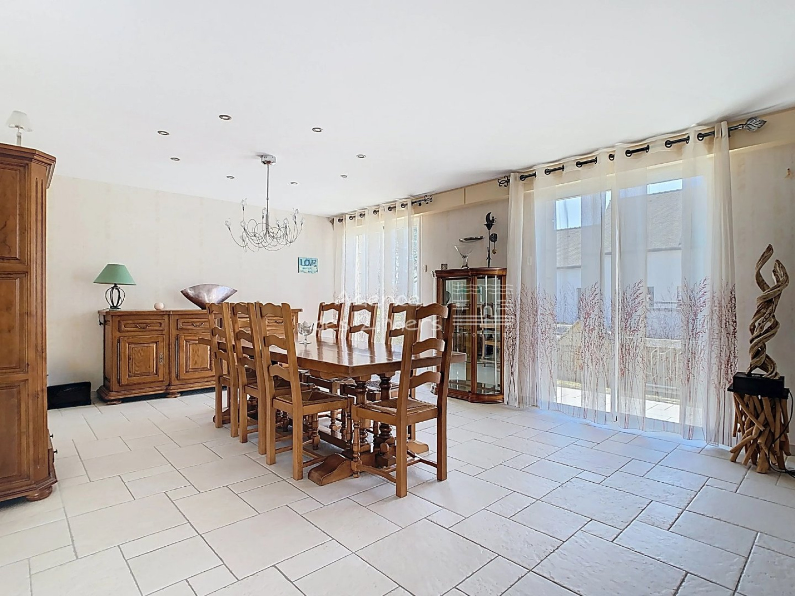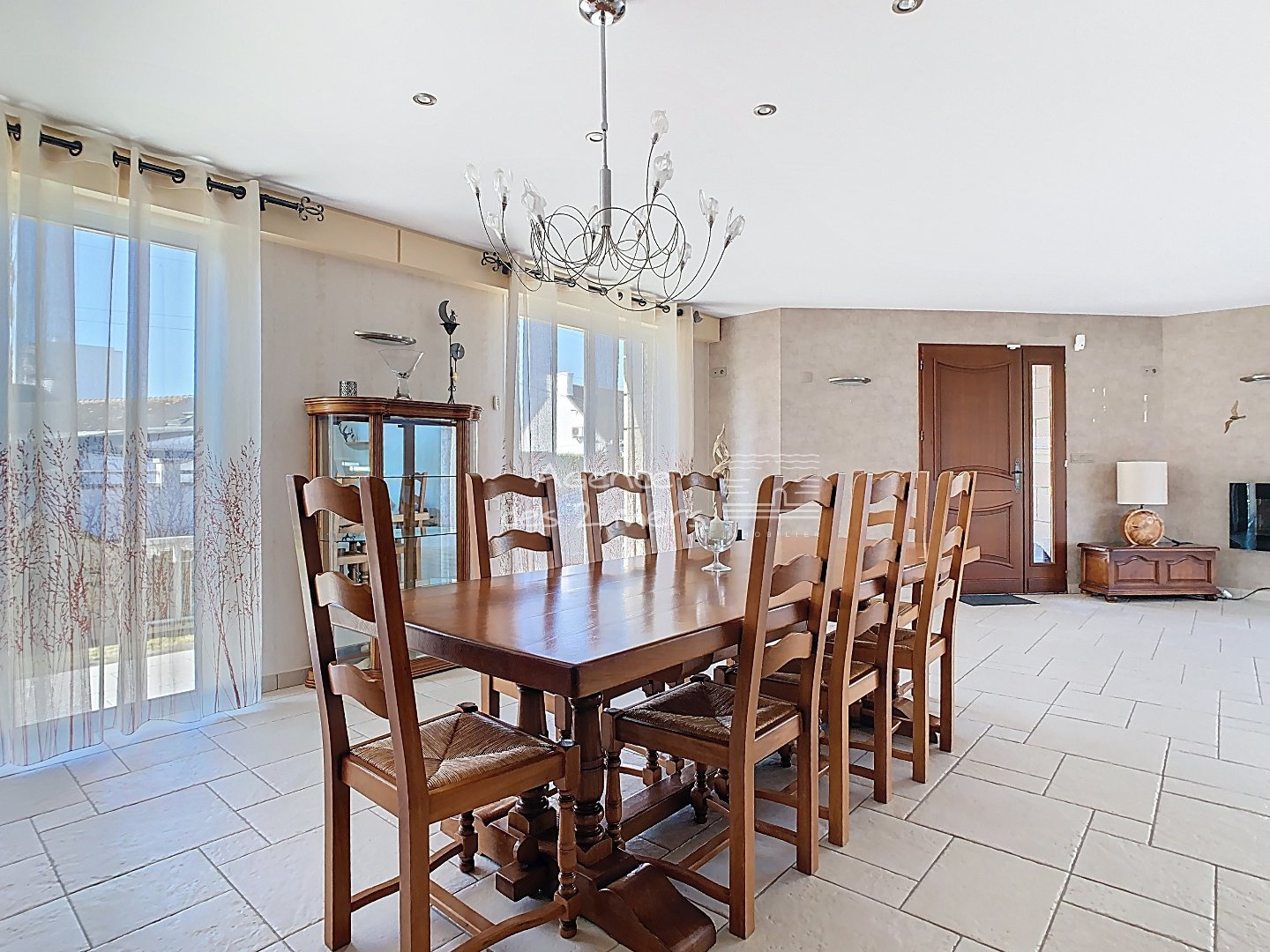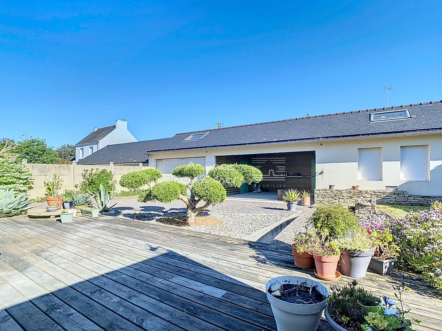 Quiberon (56170)Au coeur d'un agréable quartier, proche Grande-Plage, Saint-Clément, Bois d'Amour... Maison traditionnelle, rénovée avec des prestations de qualité. Elle dispose au rez-de-chaussée : Entrée sur spacieux séjour-salle à manger, cuisine aménagée et équipée ouverte, lumineux salon avec poêle à bois, dégagement avec placards, chambre parentale avec dressing et salle d'eau, wc indépendants et buanderie/chaufferie ; A l'étage : mezzanine, dégagement avec placards, 3 chambres, salle d'eau et wc séparés. Cave en sous-sol. Double garage avec mezzanine, carport (2 stationnements) et atelier attenant avec wc et mezzanine. Le tout sur un agréable jardin clos et arboré.
