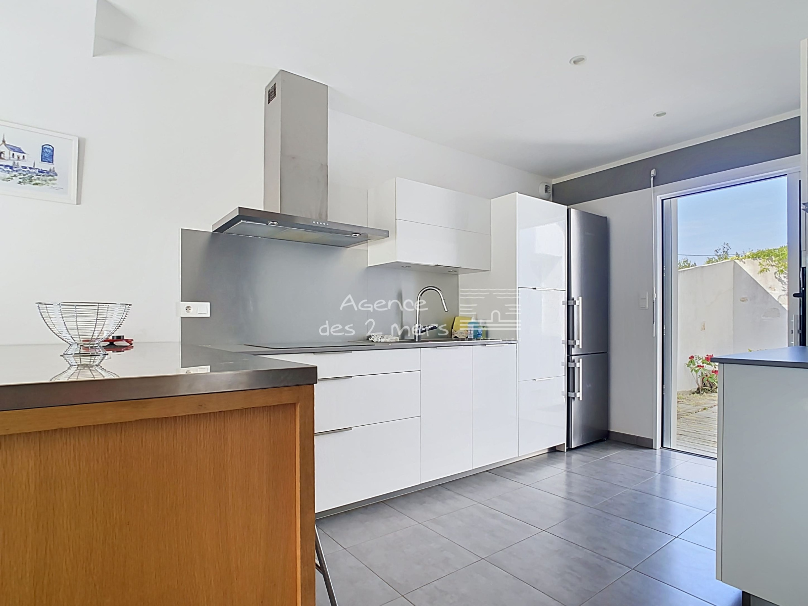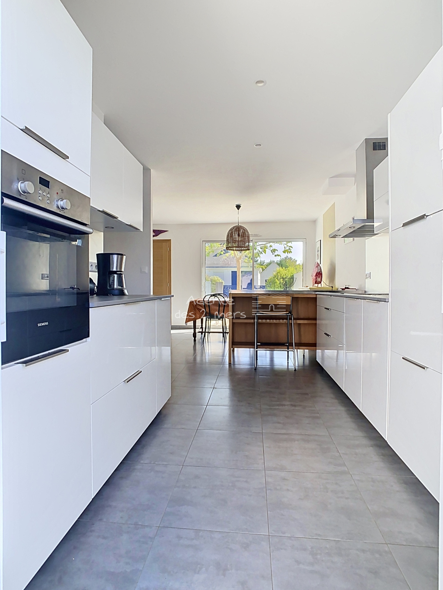 Quiberon (56170)Découvrez cette maison contemporaine construite en 2017, offrant des prestations de qualité et un confort moderne.Au rez-de-chaussée, vous trouverez une entrée ouvrant sur une pièce de vie lumineuse avec cuisine aménagée et équipée, donnant accès à deux terrasses dont une exposée plein sud. Une chambre avec salle d’eau privative ainsi que des WC séparés complètent ce niveau.À l’étage, un couloir dessert quatre chambres ainsi qu’une salle d’eau avec WC.Un cellier attenant et communicant permet un espace de rangement idéal pour vélos et outils de jardin.Le tout est implanté sur un terrain de 336 m² avec puits.Les + : maison en excellent état, prestations de qualité et équipements modernes, dont une pompe à chaleur.