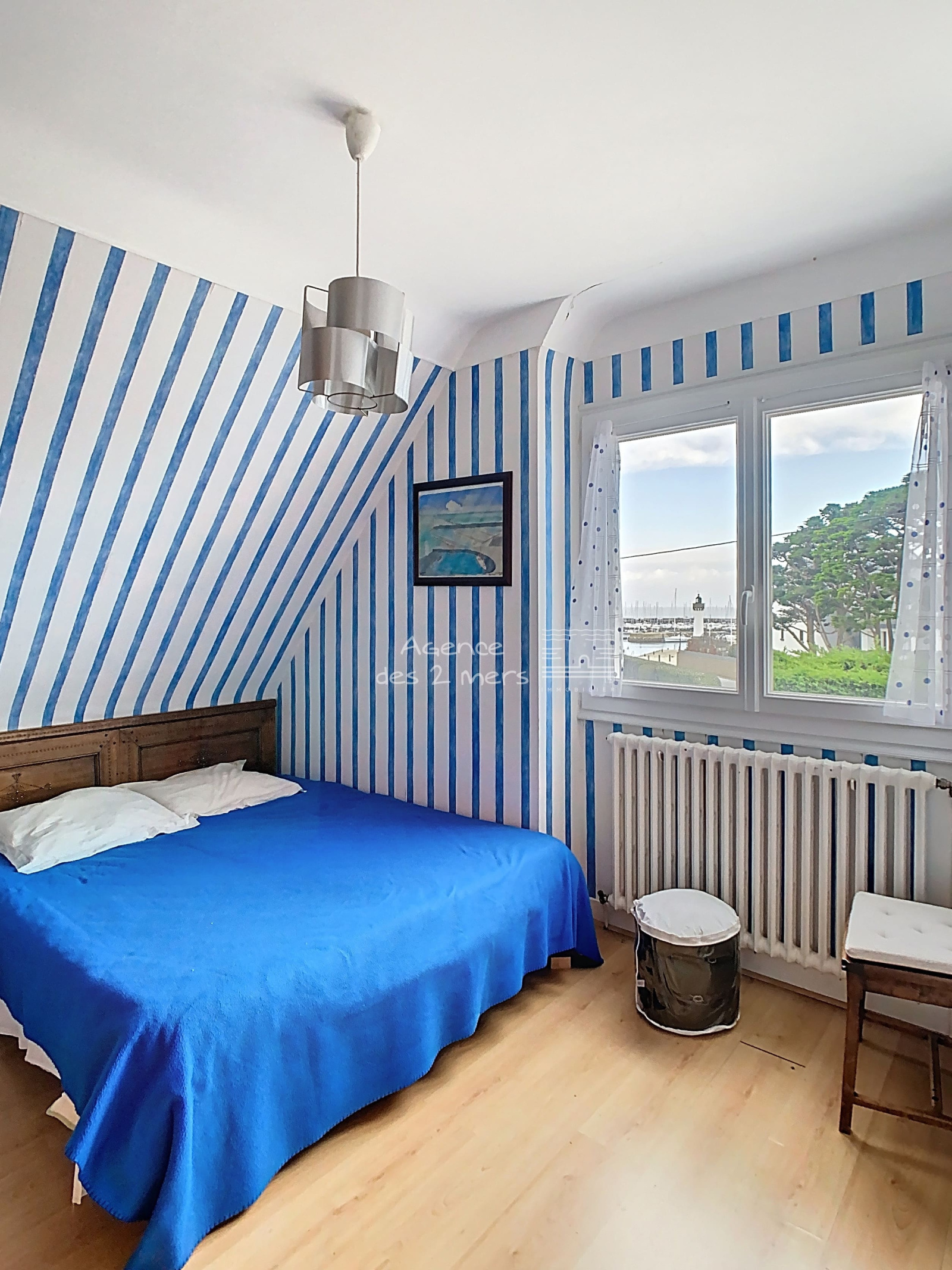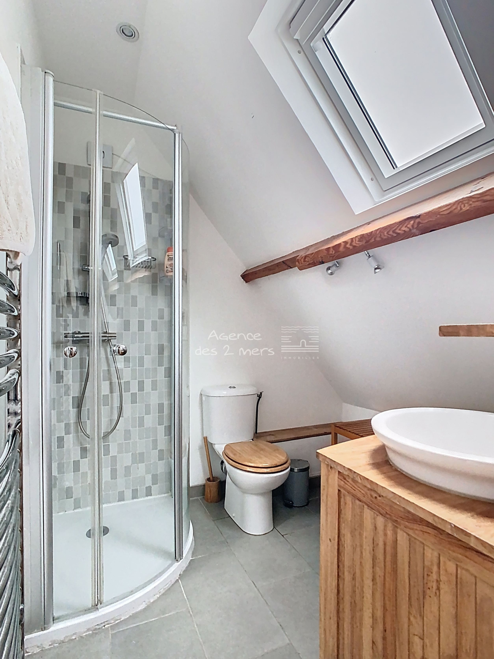 Le premier logement propose un séjour-salon lumineux avec cheminée, ouvert sur une terrasse exposée plein Sud, une véranda avec spa, une cuisine ouverte aménagée, une arrière-cuisine, un bureau (ou chambre) ainsi qu’une salle d’eau en RDC. À l’étage, 2 chambres, bureau et salle d’eau avec WC offrent de beaux aperçus sur la mer et le port.