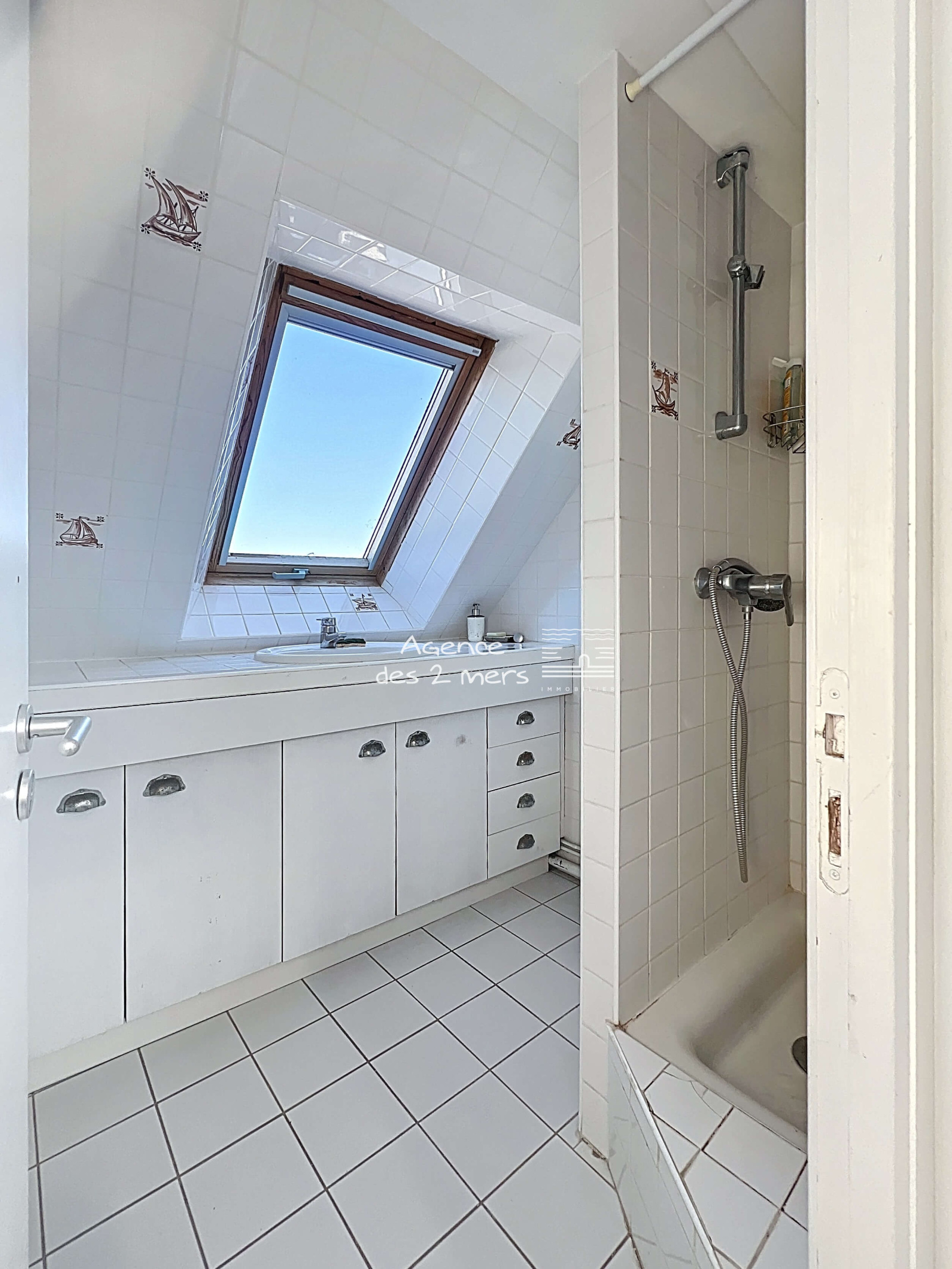 - Au 2ème étage : dégagement desservant 1 chambre et une salle d'eau avec une vue sur la mer.