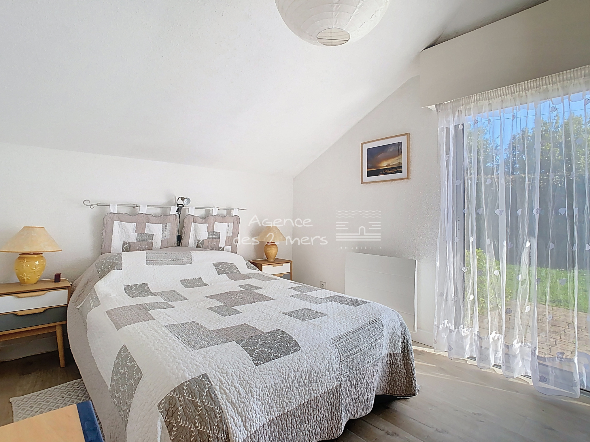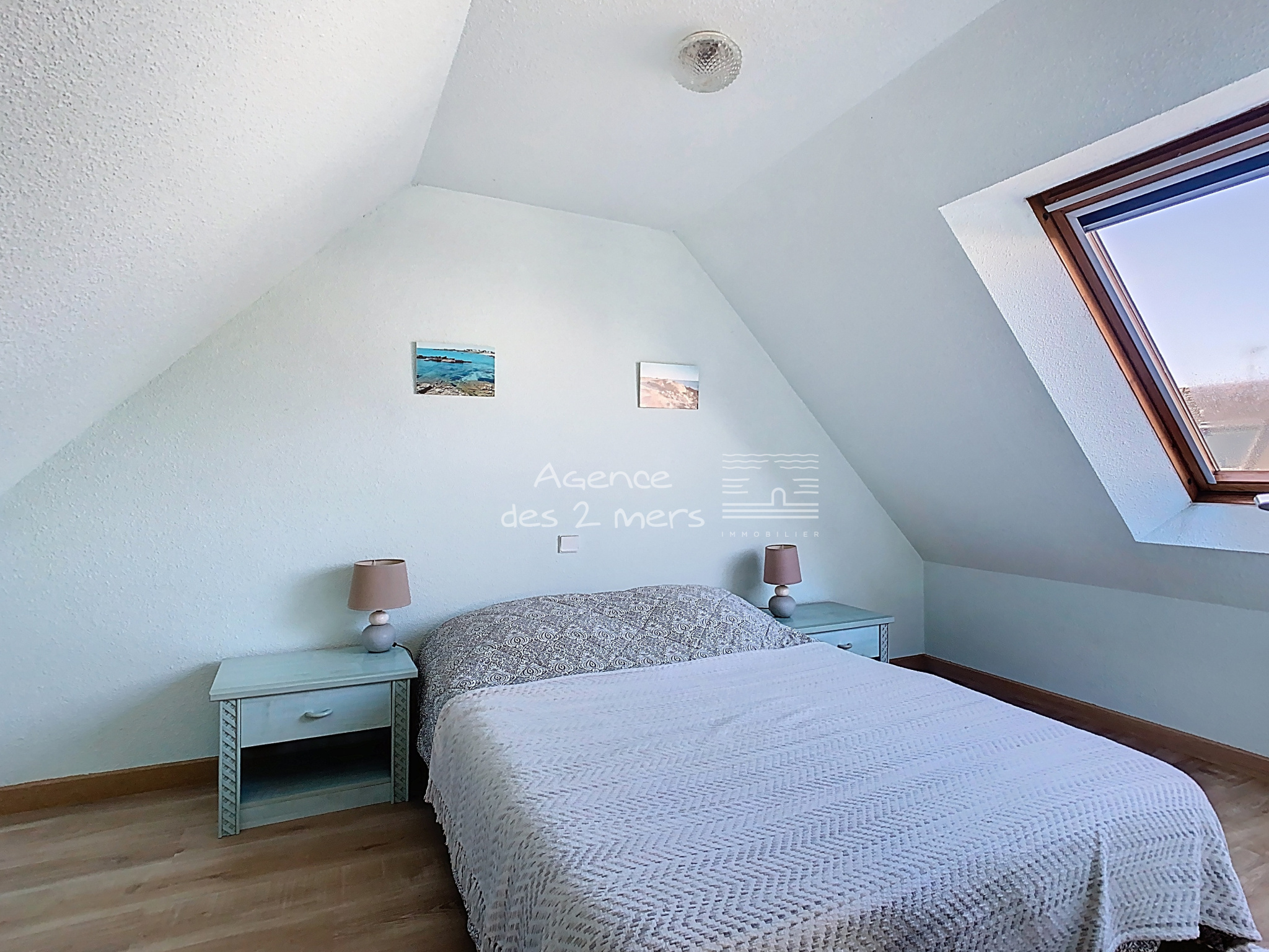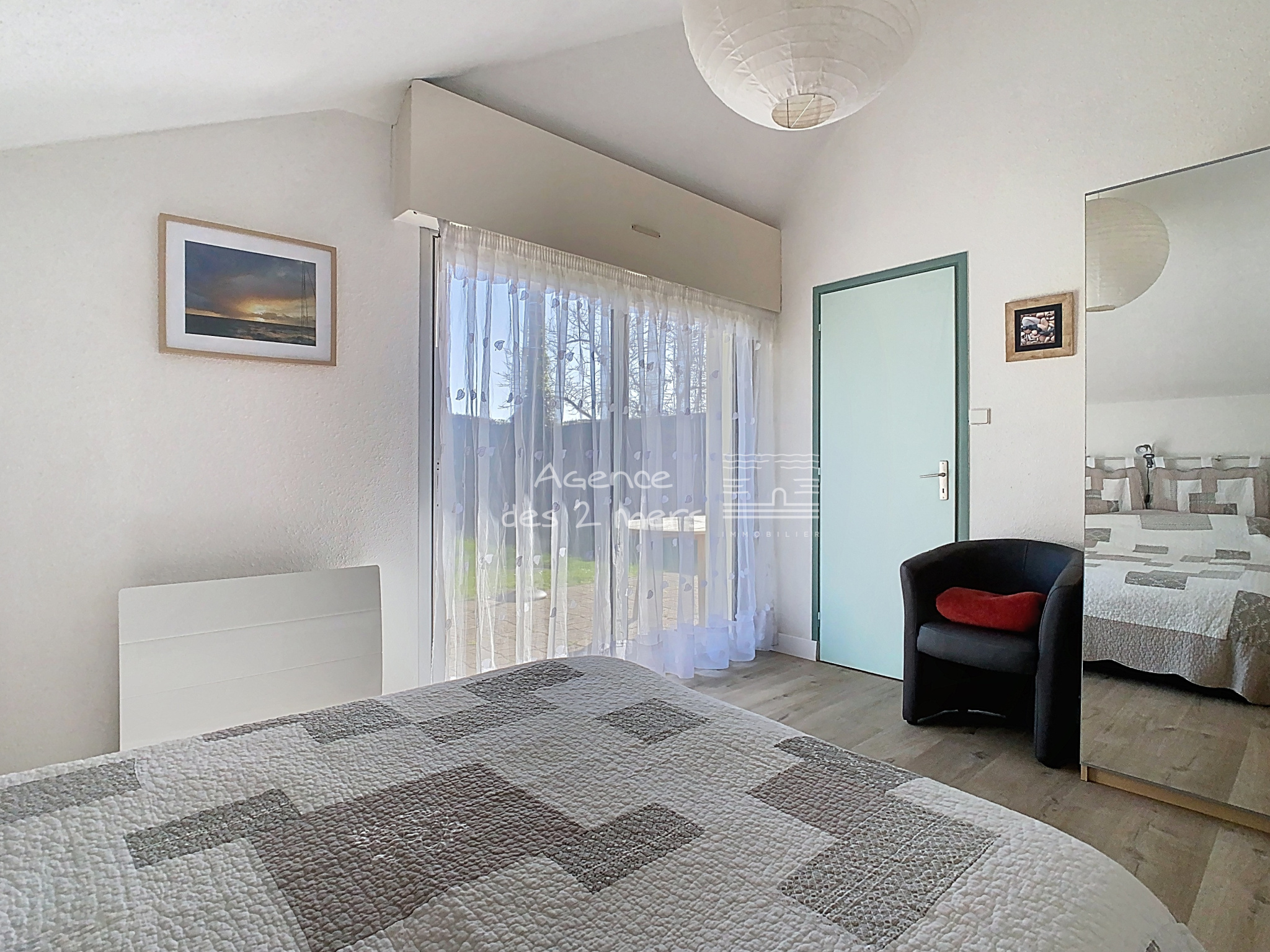 La maison se compose au rez-de-chaussée d’une entrée avec placard, d’un séjour-salon lumineux avec cuisine aménagée et équipée ouverte, l’ensemble donnant sur une terrasse et un agréable jardin clos. Vous y trouverez également deux chambres, une salle d’eau et des WC séparés. À l’étage, un palier avec placard dessert deux chambres supplémentaires. À l’extérieur, vous profiterez d’un jardin privatif d’une superficie totale de 211 m², idéal pour les moments de détente. Un garage attenant ainsi que deux places de stationnement complètent ce bien. Situation privilégiée, à proximité immédiate de la plage côté Baie, idéale pour résidence principale, secondaire ou investissement locatif. |