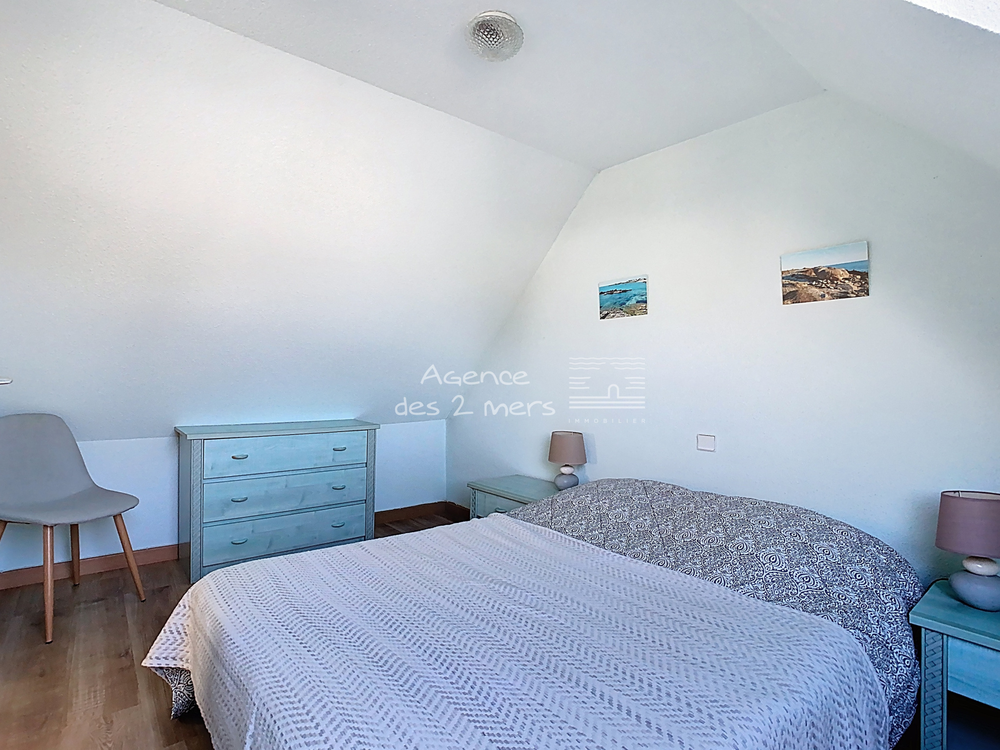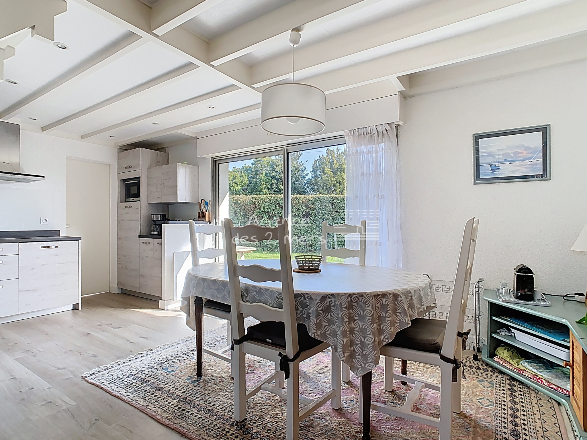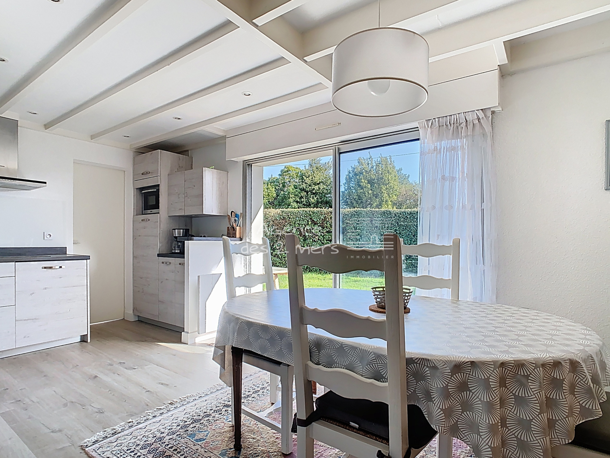 La maison se compose au rez-de-chaussée d’une entrée avec placard, d’un séjour-salon lumineux avec cuisine aménagée et équipée ouverte, l’ensemble donnant sur une terrasse et un agréable jardin clos. Vous y trouverez également deux chambres, une salle d’eau et des WC séparés. À l’étage, un palier avec placard dessert deux chambres supplémentaires. À l’extérieur, vous profiterez d’un jardin privatif d’une superficie totale de 211 m², idéal pour les moments de détente. Un garage attenant ainsi que deux places de stationnement complètent ce bien. Situation privilégiée, à proximité immédiate de la plage côté Baie, idéale pour résidence principale, secondaire ou investissement locatif. |